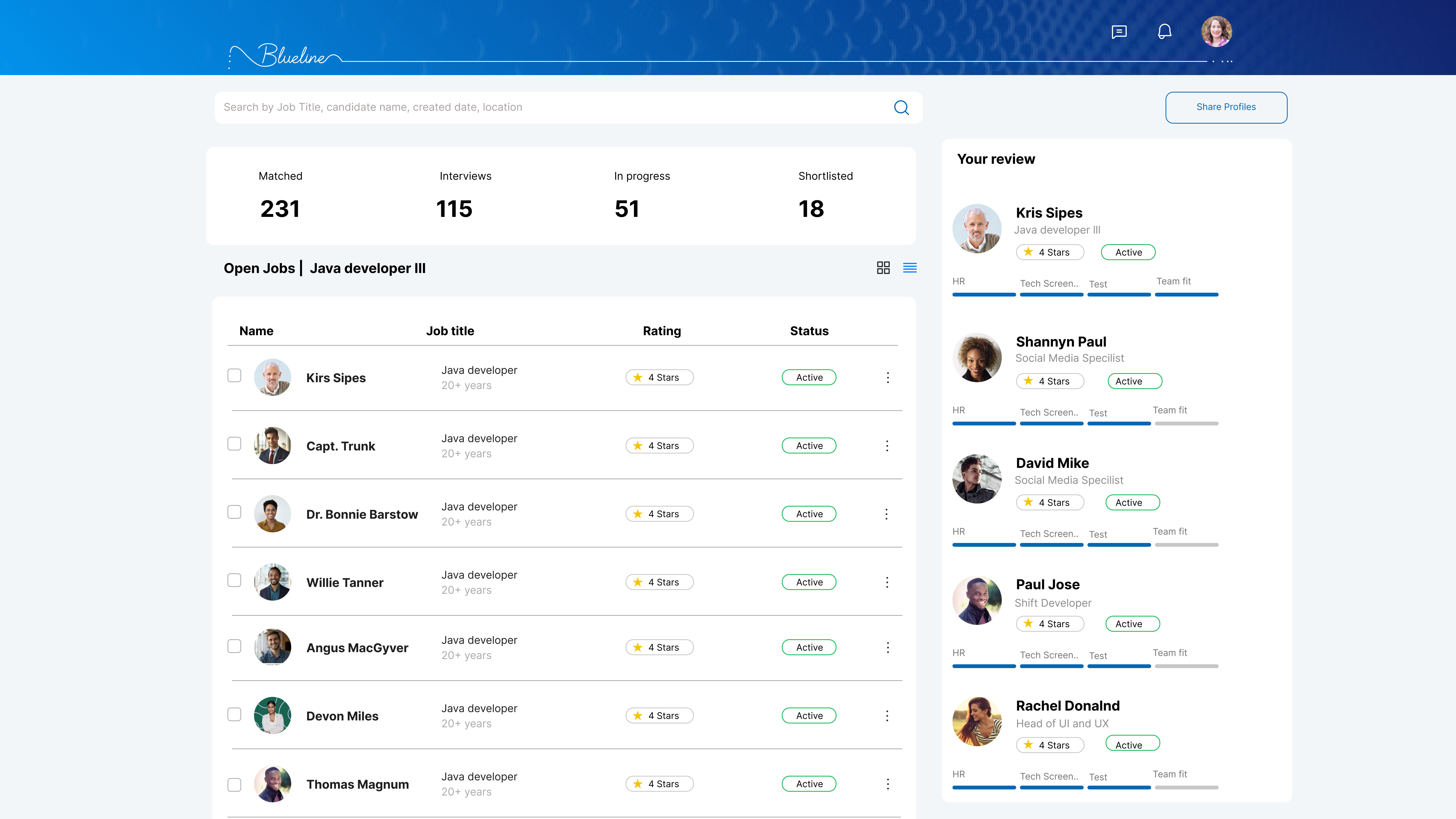 Blueline is a Hiring software used to rate candidates based on their interview performance.